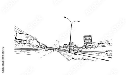 Building view with landmark of Nairobi is the capital of Kenya. Hand drawn sketch illustration in vector.