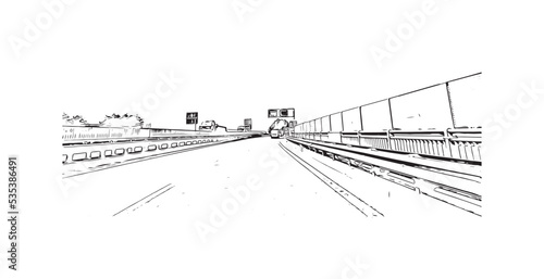 Building view with landmark of Padua is the city in Italy. Hand drawn sketch illustration in vector.