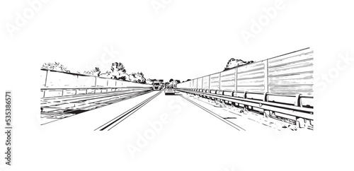 Building view with landmark of Padua is the city in Italy. Hand drawn sketch illustration in vector.