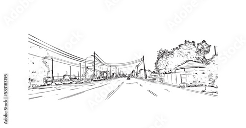 Building view with landmark of Peoria is the city in Arizona. Hand drawn sketch illustration in vector.