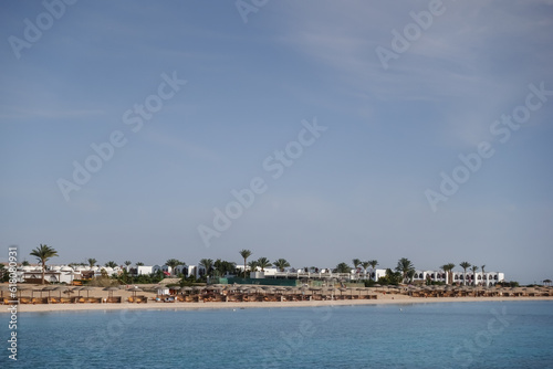 buildings palm trees and the beach from a resort in marsa alam on vacation