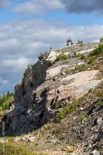 Built of stone inukshuk statue