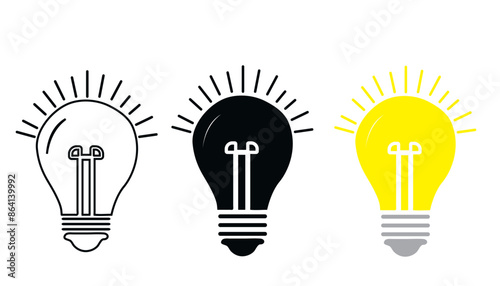 Bulb icon on white background. Black,yellow Idea symbol. Electric lamp, light,creative electricity ,.Vector Flat design.