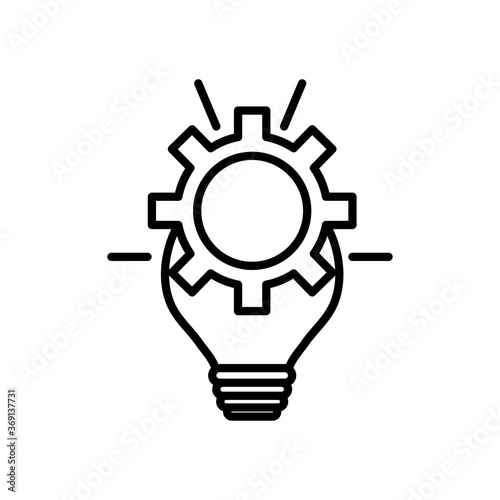 bulb light and gear wheel icon, line style