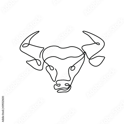 Bull head, continuous line drawing, Chinese New Year, isolated vector illustration, tattoo, print and logo design, silhouette single line on a white background.