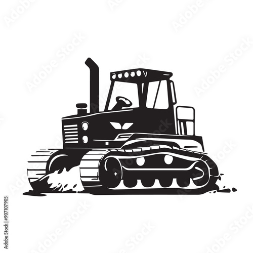 Bulldozer in cartoon, doodle style . Image for t-shirt, web, mobile apps and ui. Isolated 2d vector illustration in logo, icon, sketch style, Eps 10, black and white. AI Generative