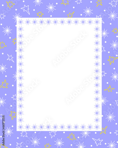 Bullet journal blank printable page, winter holidays card template cover design decorated with outline image stars and snowflakes, rectangular frame for Christmas, New Year invitations, cards