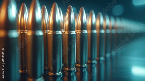 Bullets aligned, dark background, ammo, firearm concept, military