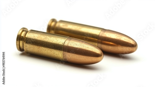 Bullets Isolated Ammunition Firearm Ammo Gun Rounds Metal Cartridges Military Object Pistol Hunting Brass Caliber Shells on White Background for Easy Editing