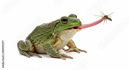 Bullfrog using its tongue to catch prey—an incredible split-second natural behavior.