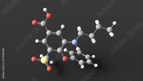 bumetanide molecule 3d, molecular structure, ball and stick model, structural chemical formula antihypertensive agent