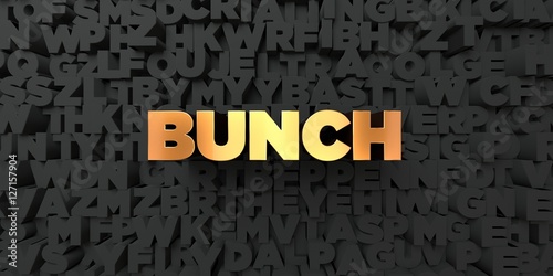 Bunch - Gold text on black background - 3D rendered royalty free stock picture. This image can be used for an online website banner ad or a print postcard.