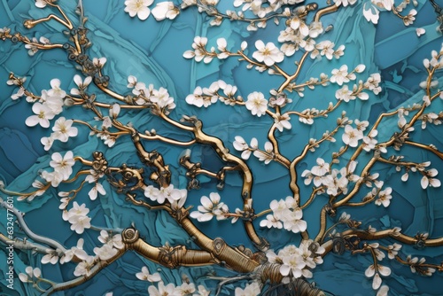 Bunch of branches on blue background. Beautiful illustration picture. Generative AI