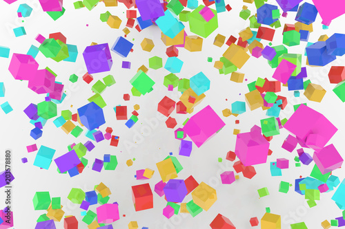 Bunch of colorful square boxes flow from the floor, modern style background or texture. Backdrop, graphic, concept & greeting.