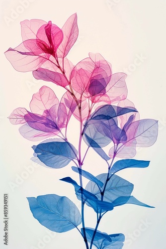 Bunch of Pink and Purple Flowers with Blue Leaves on White Background