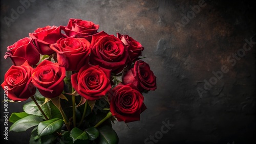 Bunch of Red Roses in Total Darkness with Pitch Black Background and Big Empty Space for Text. Perfect for: Floral Photography, Romantic Designs, Text Space