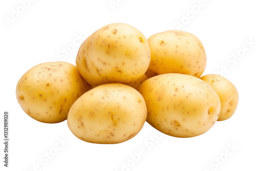 Bunch of yellow potatoes are piled on top of each other, isolated