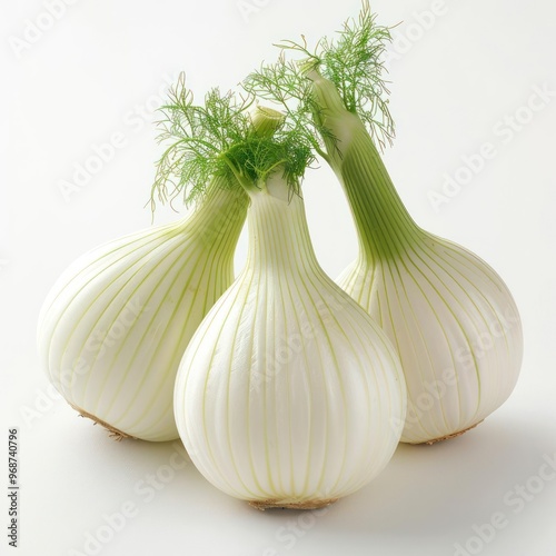 Bunches of fresh garlic cloves with green tops, ready for use.