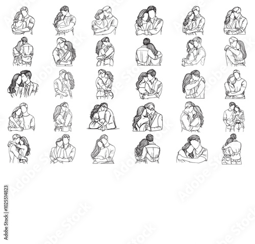 Bundle Line Art couple sharing a loving Illustration Hand Drawn Clipart