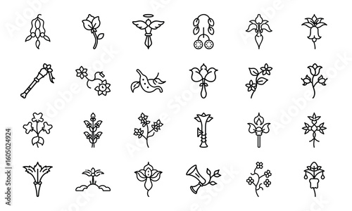 Bundle of Botanical and Feminine Line Art Icons — Uterus, Flowers, Herbal Elements in Minimal Vector Style for Feminist, Medical & Nature Themes