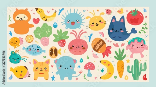 Bundle of Emojis, Animals, and Kawaii Food Characters