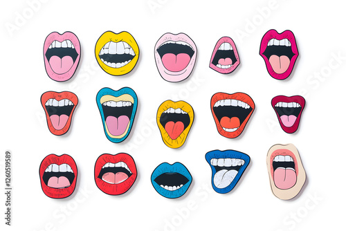 Bundle of vintage magazine women's mouths stickers, Design from vintage 90's magazine, isolated on white background