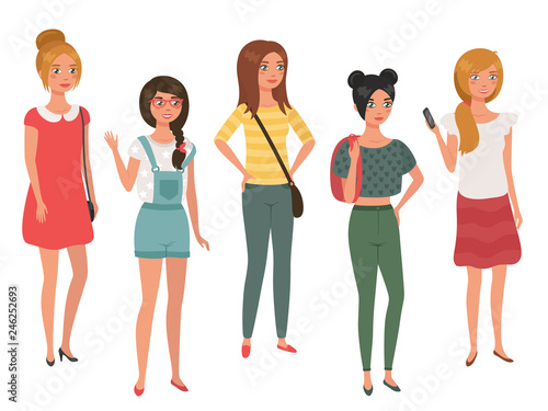 Bundle of young pretty girls isolated on white background. 3/4 view.