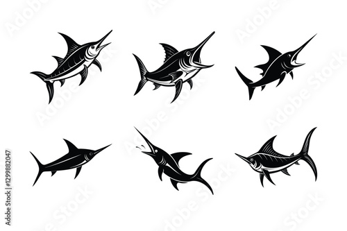 Bundle Vector Silhouettes Speeding and Jumping Swordfish