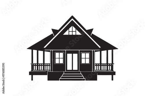 Bungalow silhouette vector illustration, Bungalow silhouette vector, Bungalow silhouette PNG