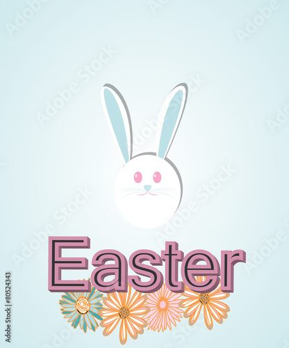 bunny easter, flowers and text over blue color background