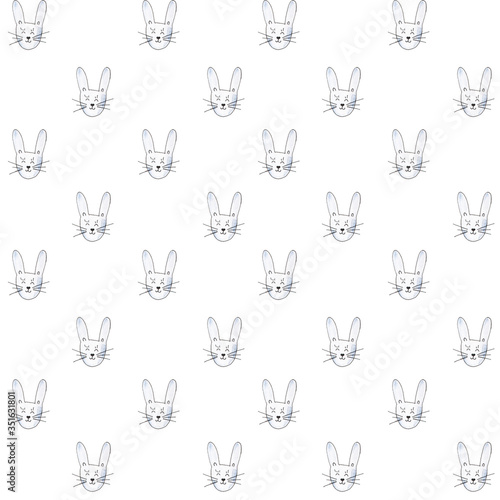 Bunny Seamless Pattern. Watercolor Hand Drawn, Rabbit Head Seamless Background