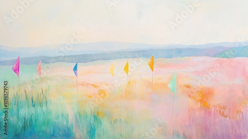 Bunte Fahnen in verträumter Landschaft