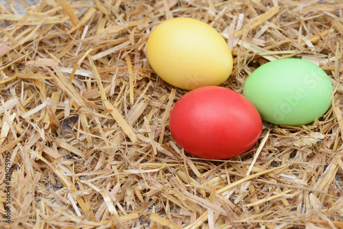Bunte Ostereier im Stroh