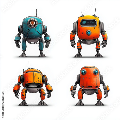 Bunte Roboter-Designs in verschiedenen Farben und Formen
