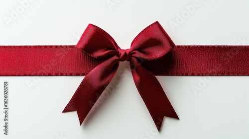 Burgundy ribbon tied in a bow, centered on a white backdrop