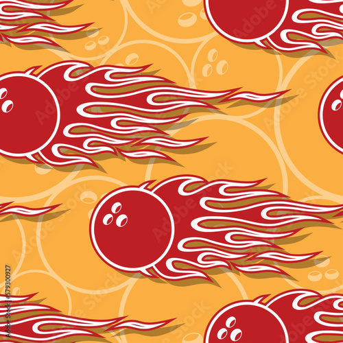 Burning bowling balls repeating tile background. bowling balls and tribal fire flames seamless pattern vector image wrapping paper design.