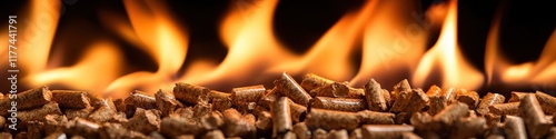 Burning fire pellets. Selective focus