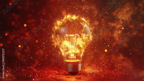 Burning Light Bulb Creative Idea Concept - Ignition of Innovation and Energy idea concept energy hot