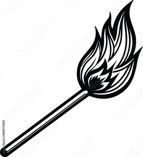 Burning Matchstick Vector with Realistic Flame and Smoke
