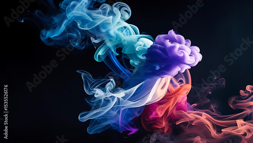 Burning smoke with colorful flowing flames on a dark background