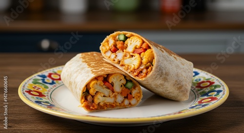 Burrito with Cauliflower and Vegetables on Plate