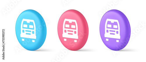 Bus automobile passenger transportation button city transfer journey 3d isometric circle icon