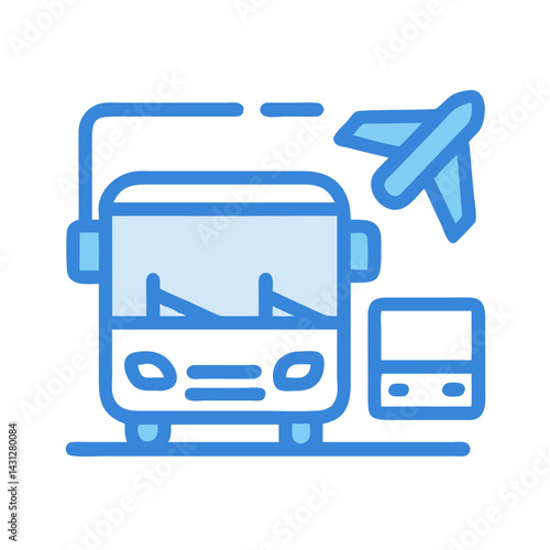 Bus, Plane and Luggage: Transportation and Travel Icon Illustration