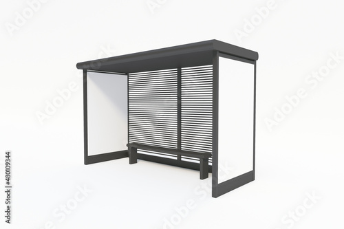 Bus Stop Bus Shelter Mockup with white Background 3D Rendering