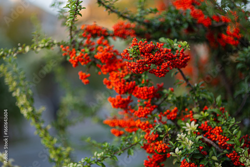bush of rowan and sea buckthorn berries