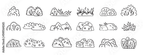 Bushes doodle hand drawn line icon set. Bushes clipart outline