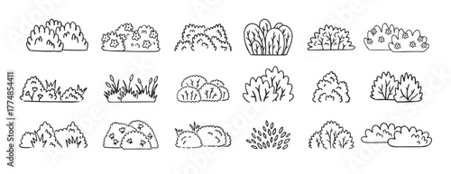 Bushes doodle hand drawn line icon set. Bushes clipart outline