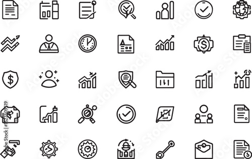 Business & Finance Analytics Line Icons Set - Growth, Management, Data, Success & Strategy