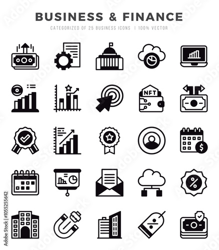 Business & Finance Icons Pack Lineal Filled Style. Vector illustration.
