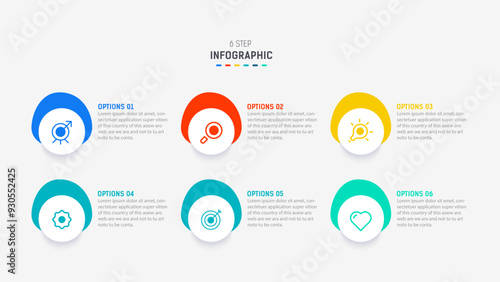 Business infographics design for Six Step, option, parts or process. Infographic 6 element design template for presentation. process diagram, step banner, flow chart, 6 option template.